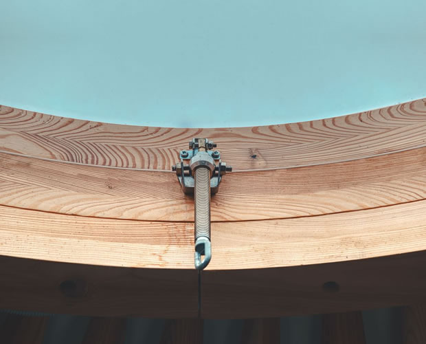 In our all-year round Yurts we have replaced the standard wooden crown with an openable skylight made of acrylic glass.